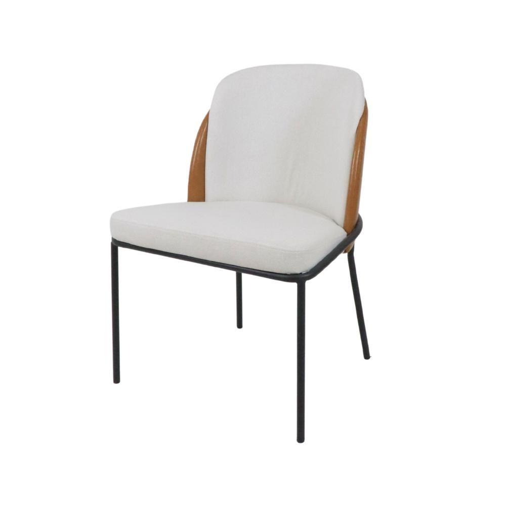 Cadeira De Jantar Nevada Com Encosto Curvo Estofada Em Linho Cru E Couro Sintético Creme