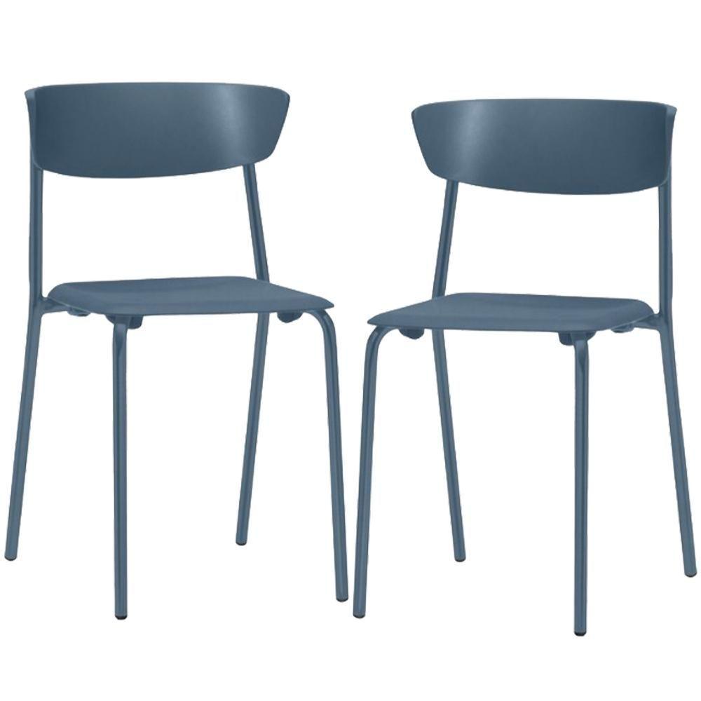 Kit 02 Cadeiras Empilhável Fixa Atom F02 Base Aço Azul - Lyam Decor