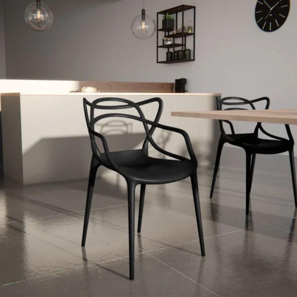 Kit 2 Cadeiras Cozinha Design Empilhável Cor:preto