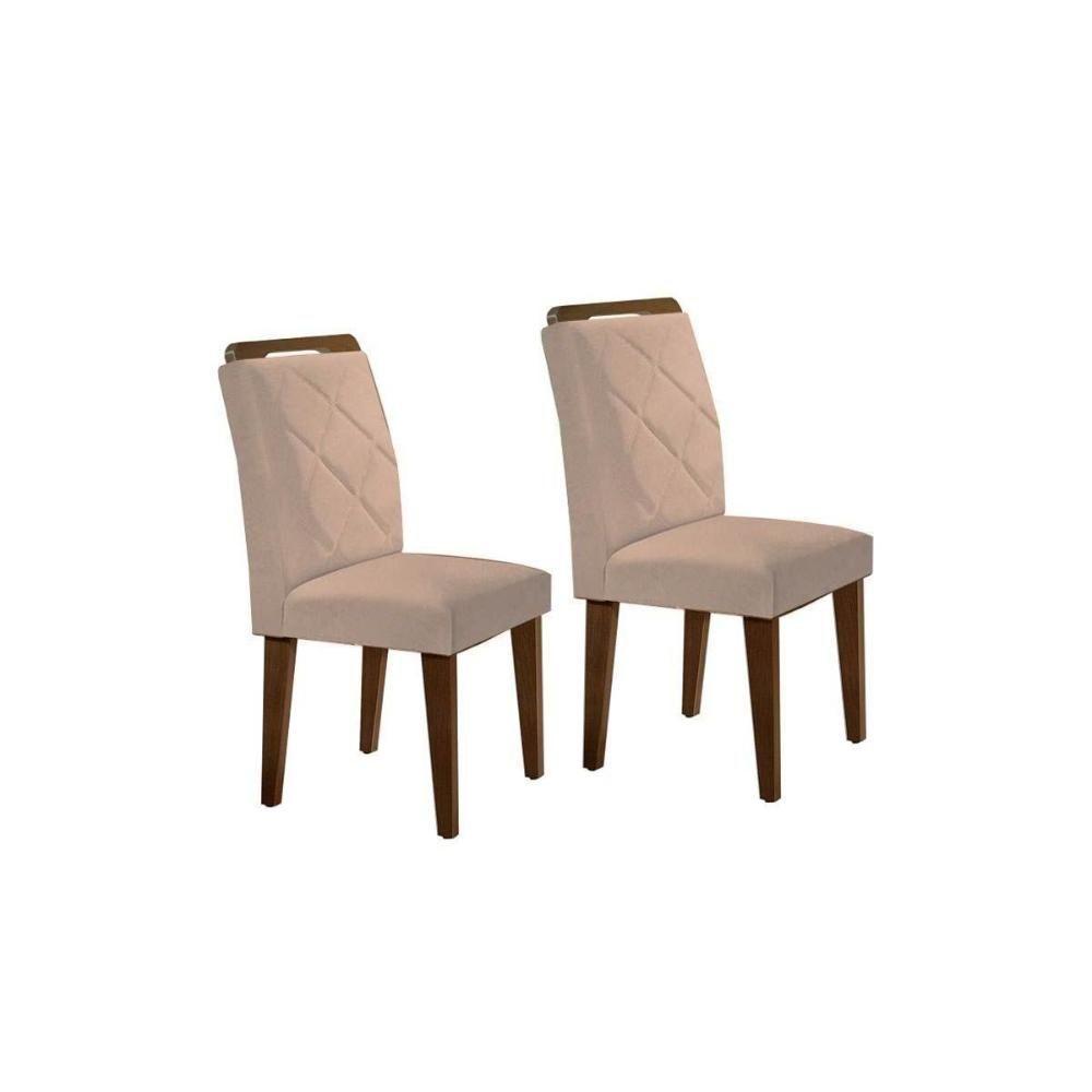 Kit 2 Cadeiras Sala Jantar Melissa 2 Un Madeira Capuccino Suede Creme Rufato