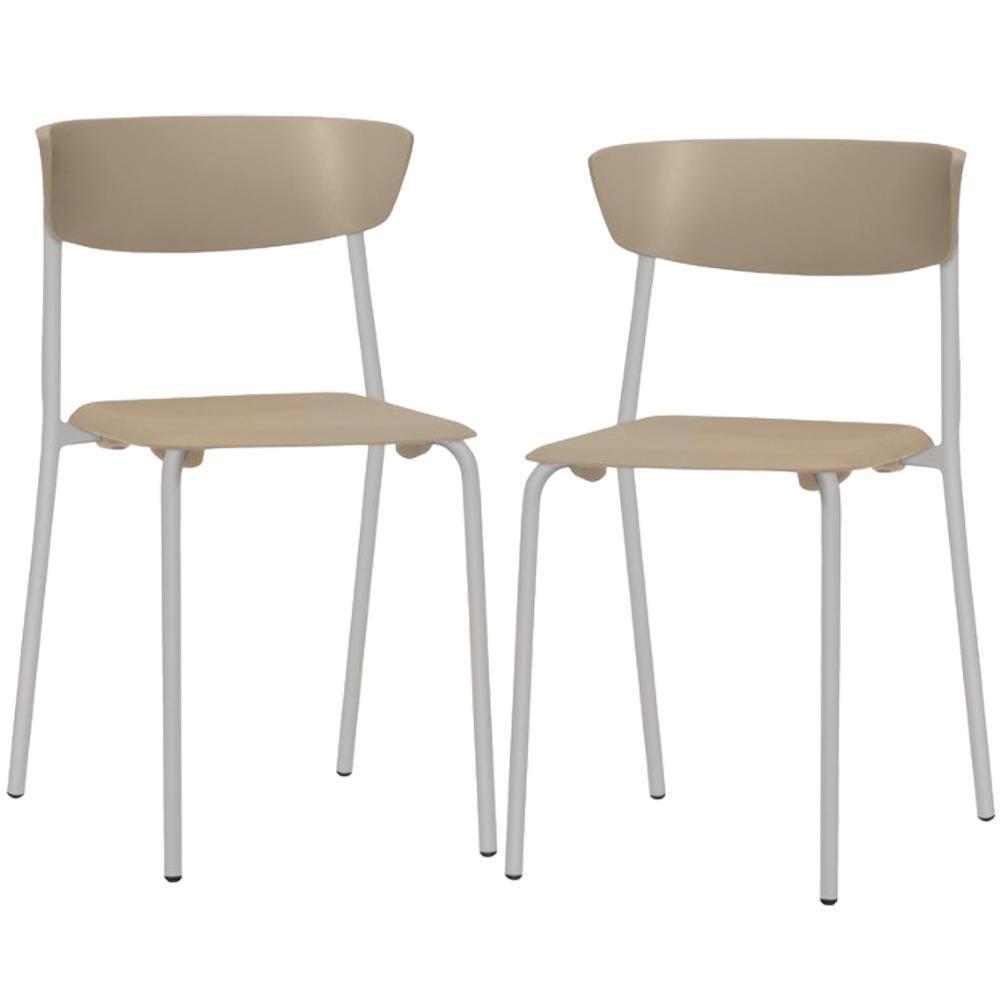Kit 02 Cadeiras Empilhável Fixa Atom F02 Base Aço Cinza Nude - Lyam Decor
