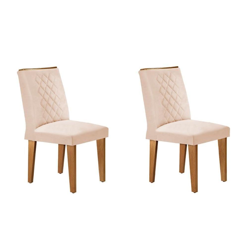 Kit 2 Cadeiras Sala Jantar Jade 2 Un Madeira Capuccino Suede Creme Rufato
