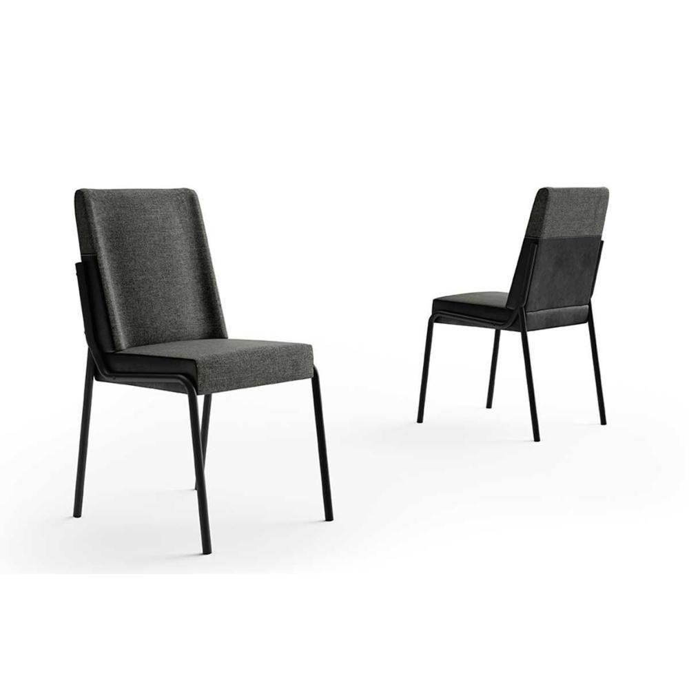 Cadeira Sala De Jantar Hug 1749 Aço Kit 2 Uni Preto/linho Grafite/courino Preto - Carraro