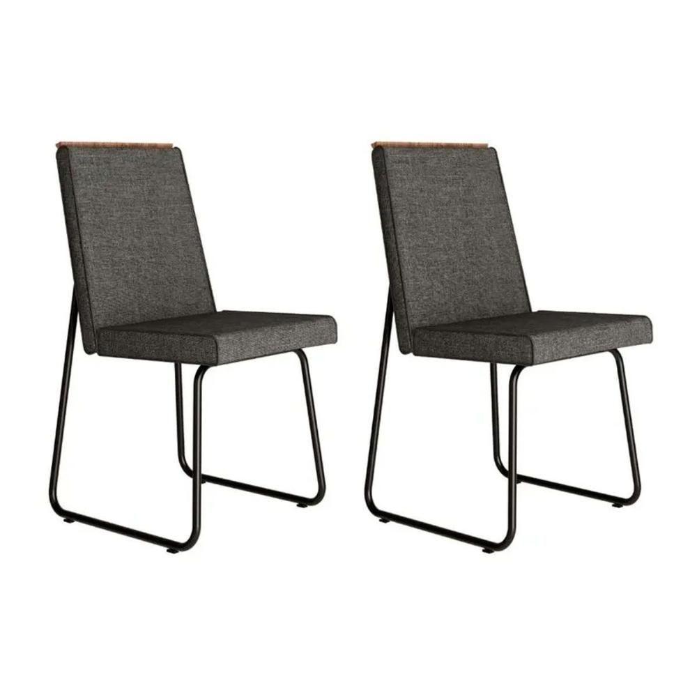 Kit 2 Cadeiras De Cozinha 1736 Aço 2 Uni Preto Linho Grafite Courano Preto