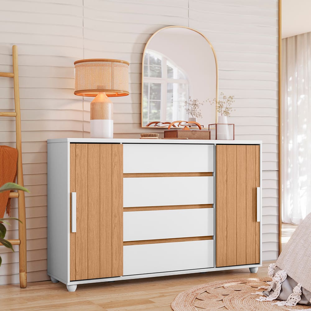 Cômoda Palumoveis Evidenza com 4 Gavetas e 2 Portas – 150cm de Largura