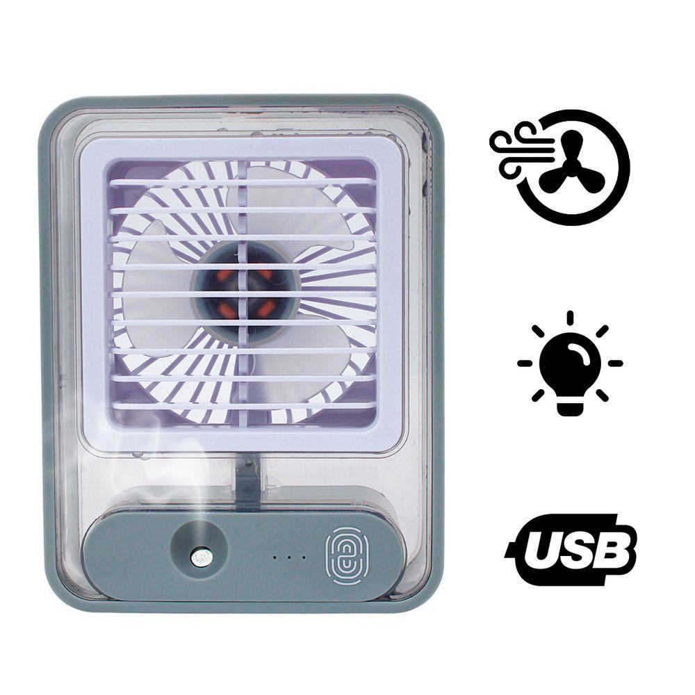 Ventilador Portatil Umidifcador Luminaria Usb De Mesa 3 Velocidades Cinza
