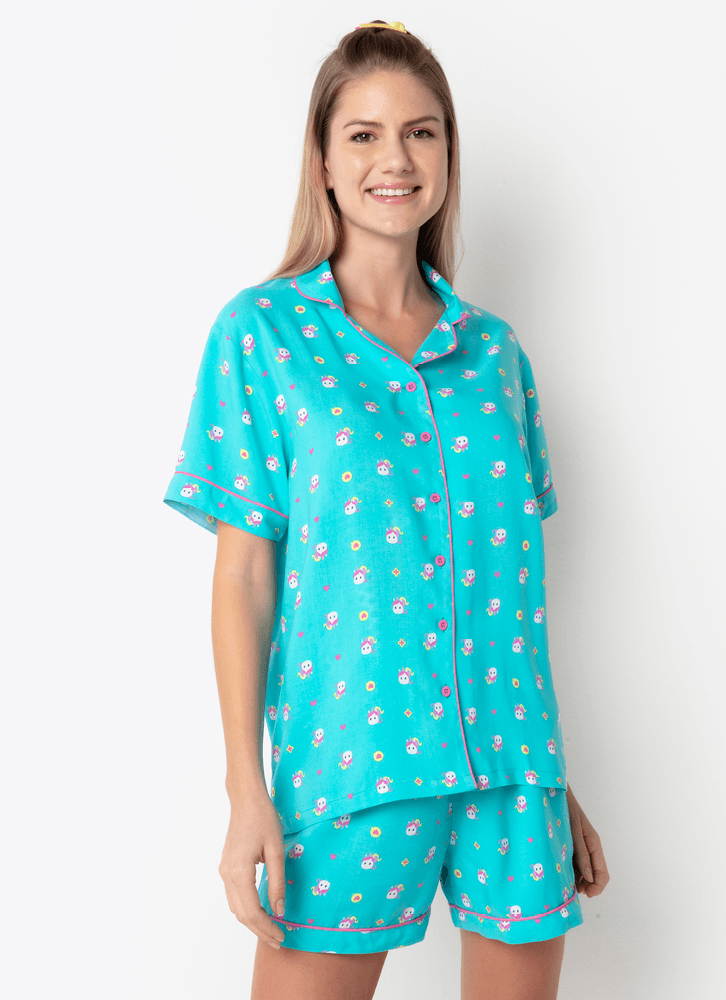 Pijama Manga Curta Viscose Feminino Unicórnio Kawaii