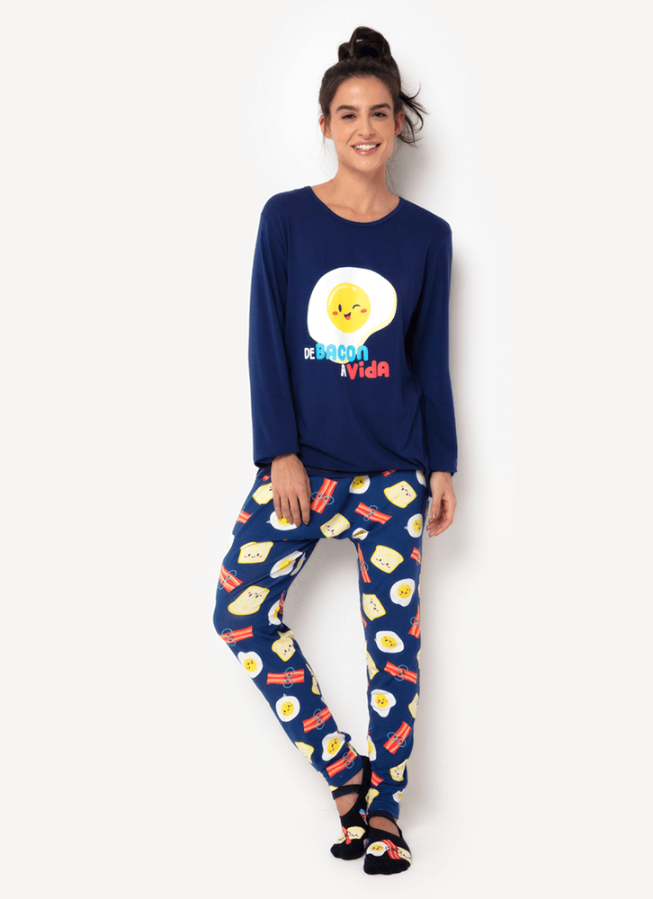 Pijama Manga Longa Feminino Viscolycra Família de Bacon a Vida