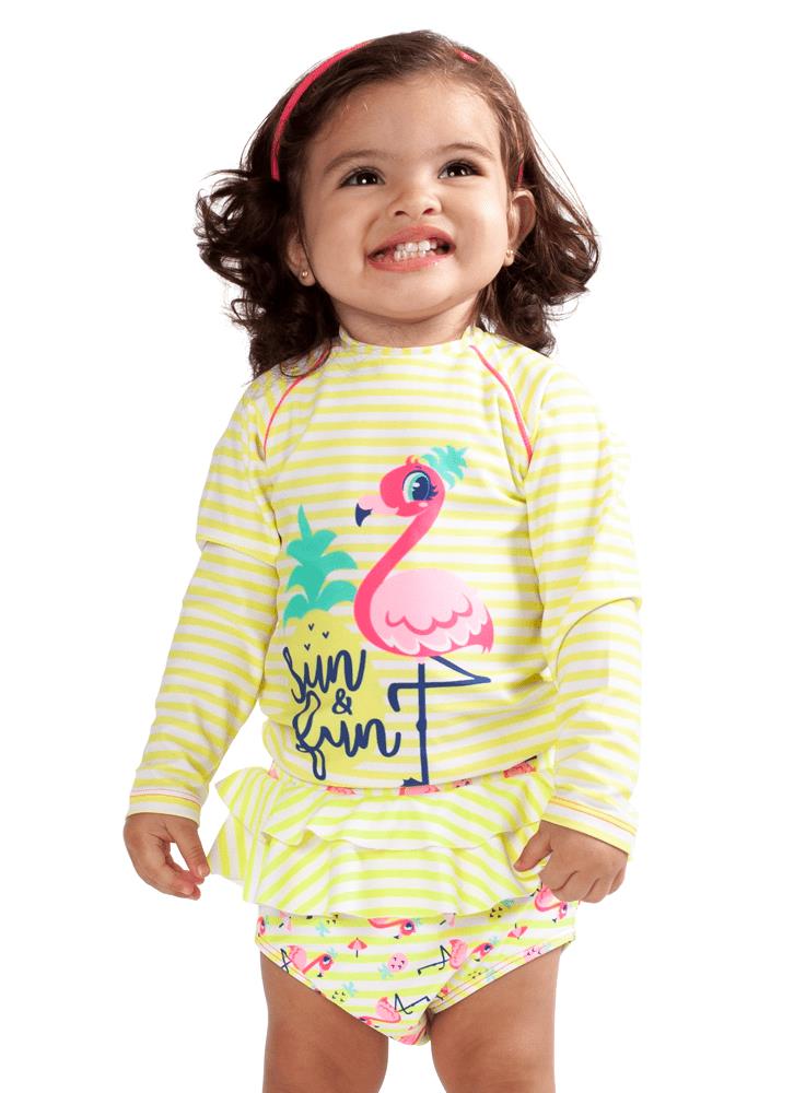 Camiseta Manga Longa Bebê Menina Flamingo Abacaxi