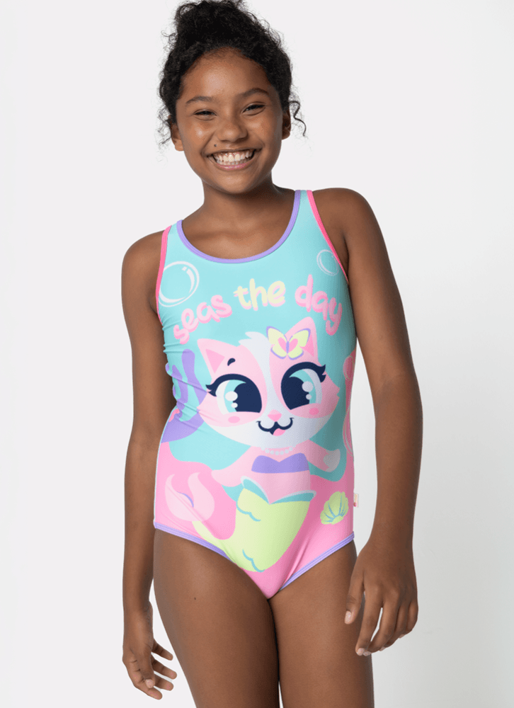 Macacão Com Proteção Solar Bebê Menina Gata Sereia