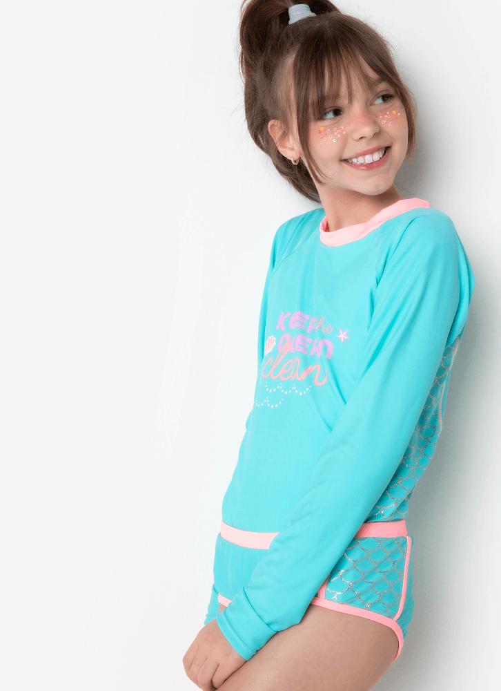 Conjunto Camiseta e Calcinha com Proteção Solar Menina Teen Sereia