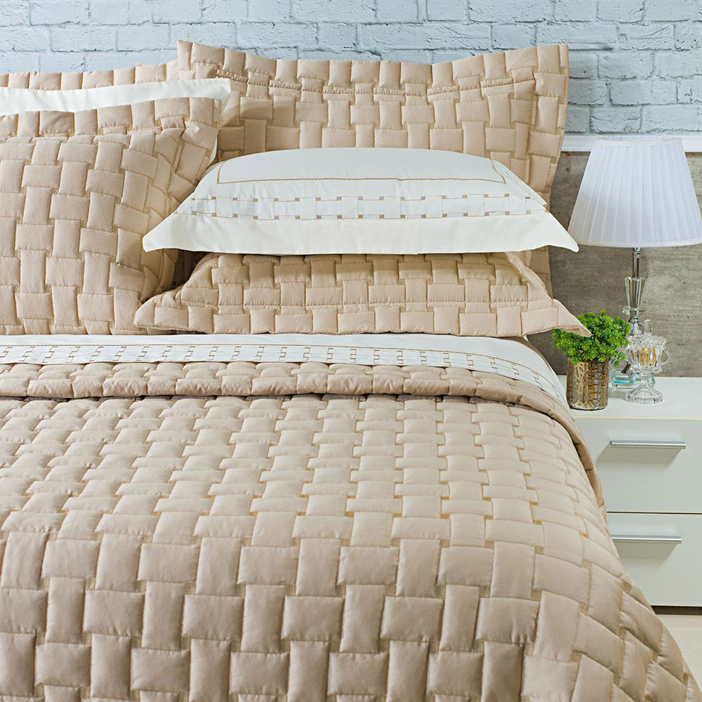 Kit Cobre Leito Colcha Garland Queen 100% Algodão 400 Fios Acetinado Bordado 5 Peças - Bege