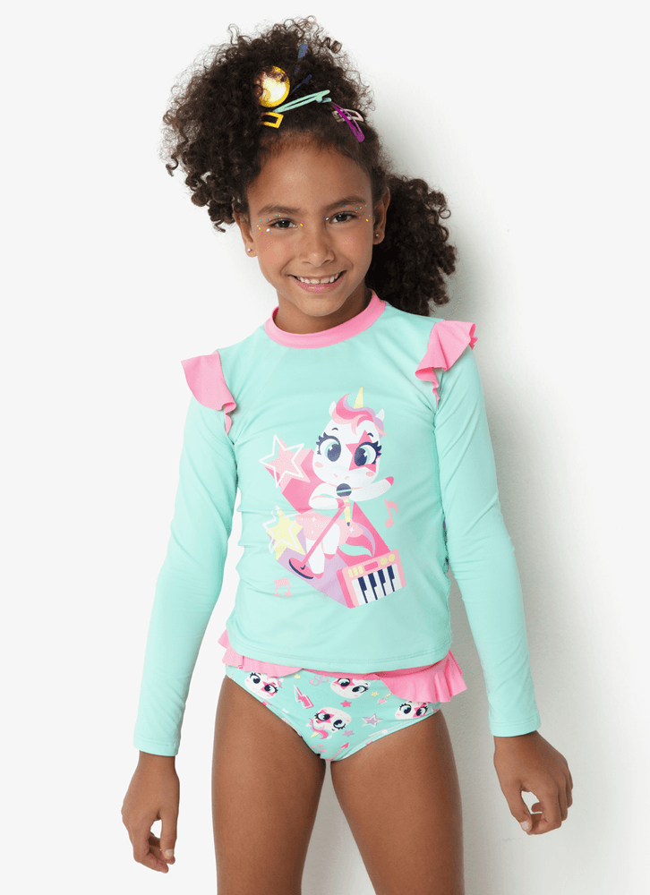 Camiseta Manga Longa com Proteção Solar Menina Unicórnio PopStar