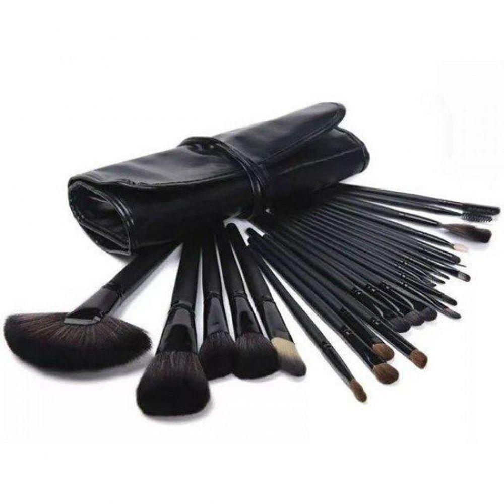 Estojo Com 24 Pincéis De Maquiagem Preto