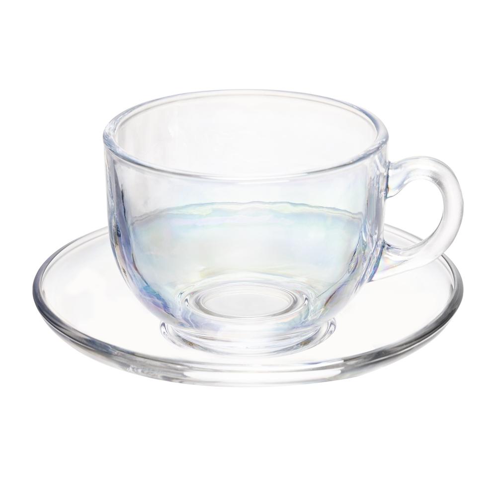 Xícara de Chá com Pires Lyor Nice 150ml Rainbow Vidro
