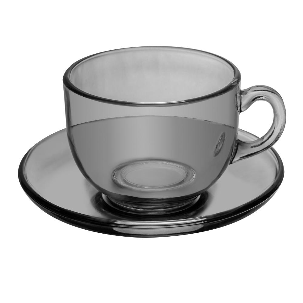 Xícara de Chá com Pires Lyor Nice 150ml Cinza Vidro
