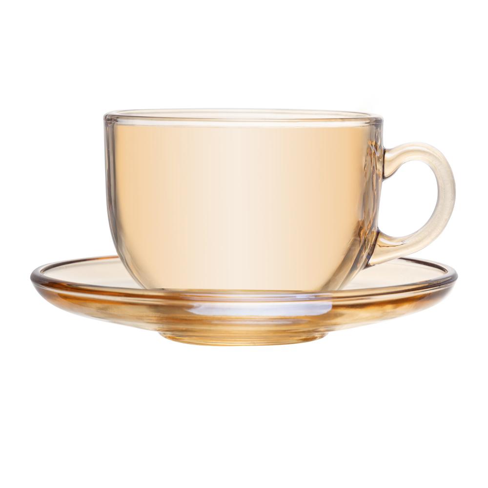 Xícara de Chá com Pires Lyor Nice 150ml Âmbar Vidro