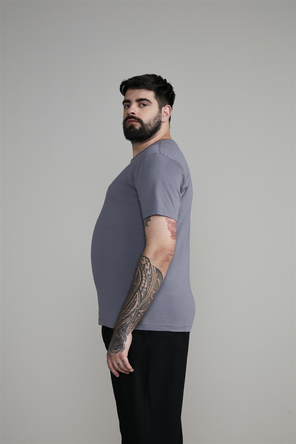 Camiseta Manga Curta Malha Básica Slim Fit - Cinza Escuro