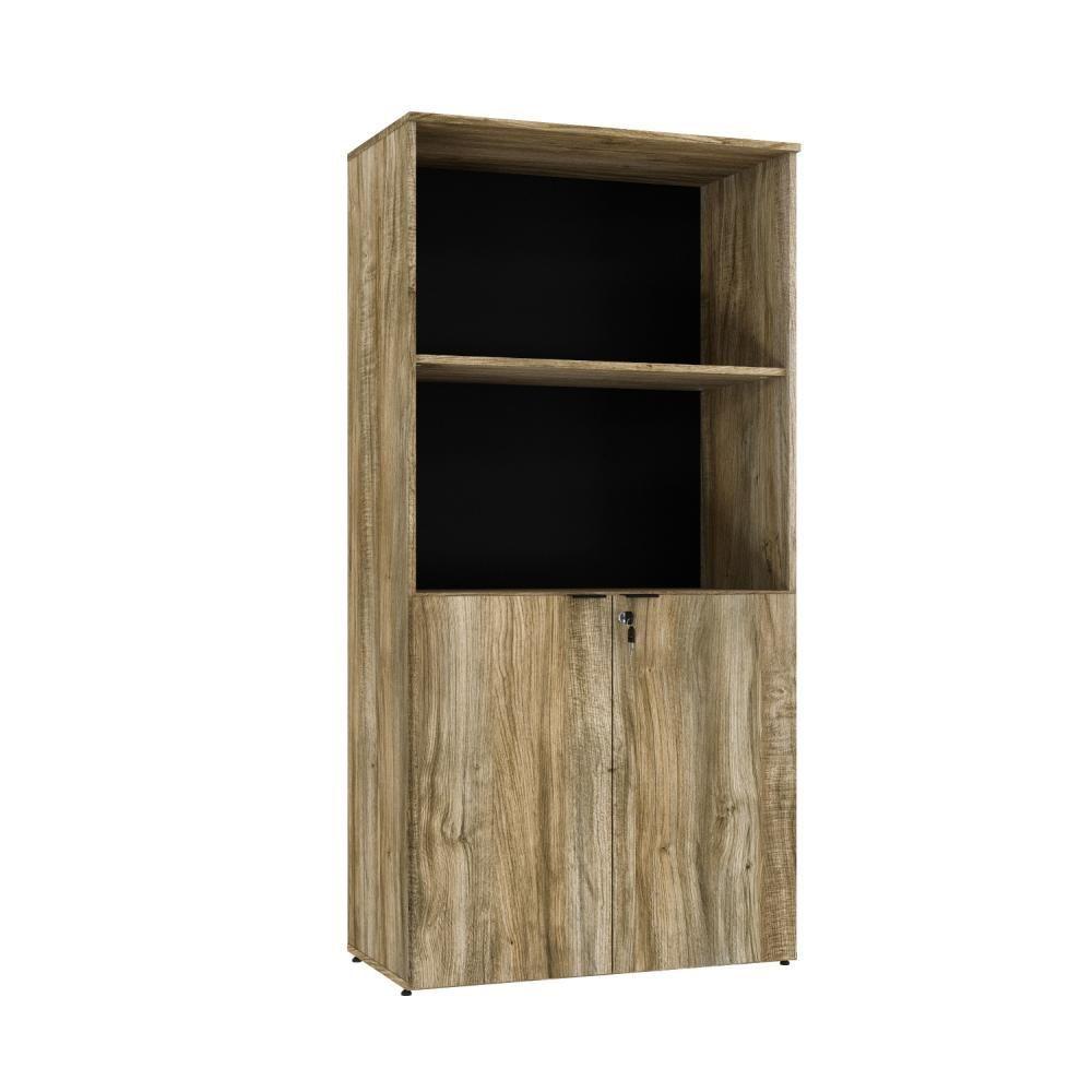 Armário Alto Estante Com 02 Portas 161,5x80x42cm Wlae80 Carvalho - Preto