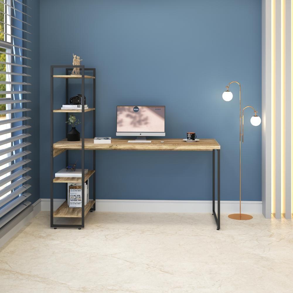 Mesa Com Estante Alta 150x64x147cm Com 4 Prateleiras Carvalho/Est.preta