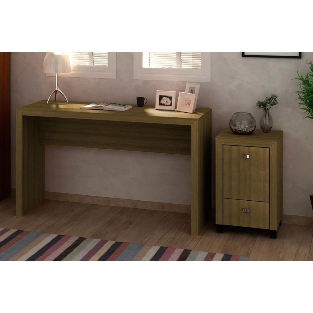 Escritório Completo 1 Mesa De Computador Me4135 + 1 Gaveteiro Me4112 2 Peças Amêndoa