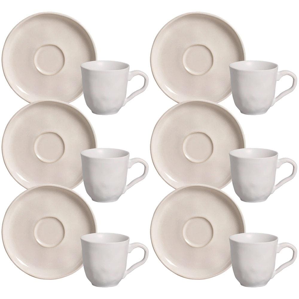 Conjunto de Xícaras de Café com Pires Porto Brasil Orgânico New White 120ml - 6 Peças