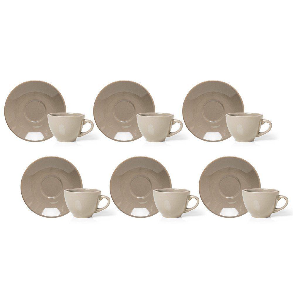 Jogo De Xícaras Copa E Cia 12 Peças Reative Em Cerâmica Taupe