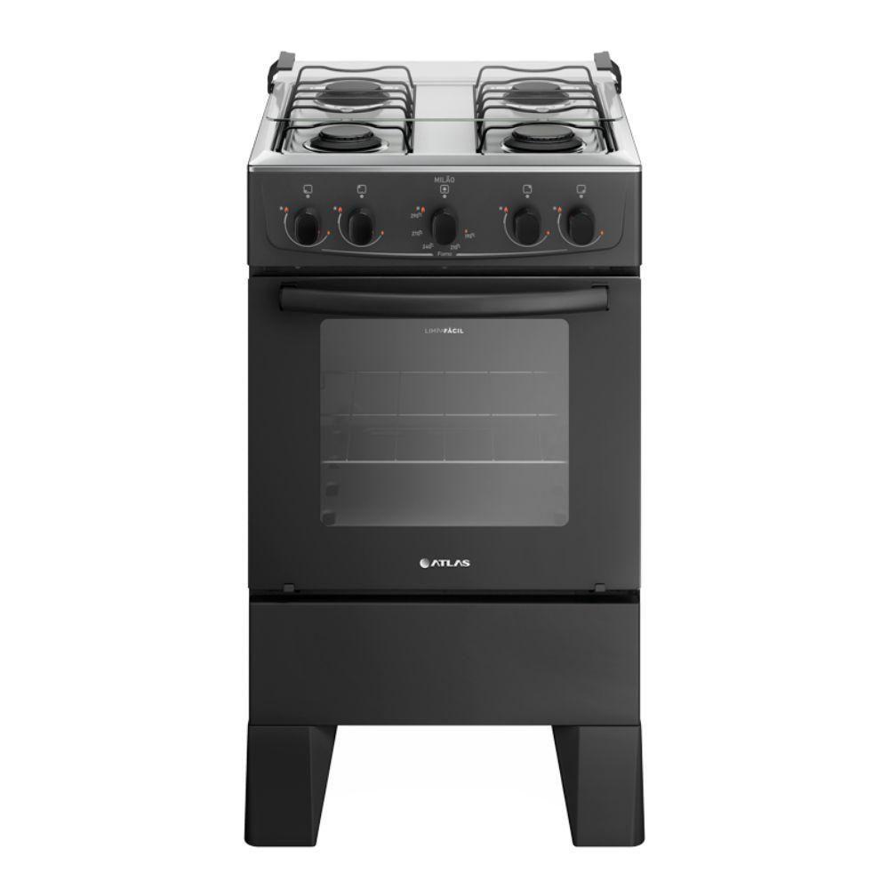 Fogão 4 Bocas Atlas Manual Milão Preto Bivolt