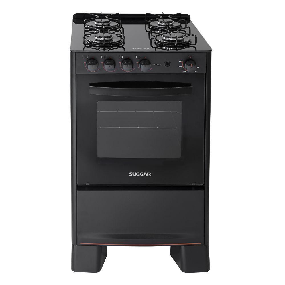 Fogão 4 Bocas Suggar Automático Mesa De Vidro Cook Glass Preto Bivolt