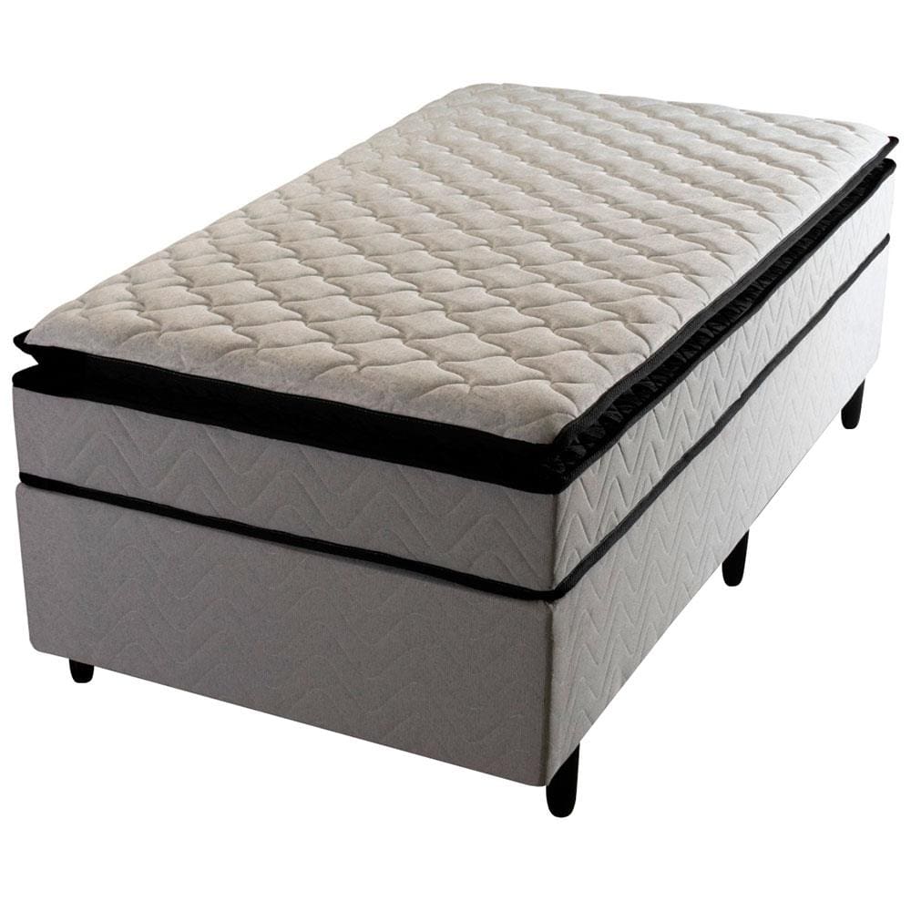 Cama Box de Solteiro Hellen Titanium com Espuma D28, Pillow Top e Revestimento em Tecido Malha 62x88x188cm - Cinza/Preto