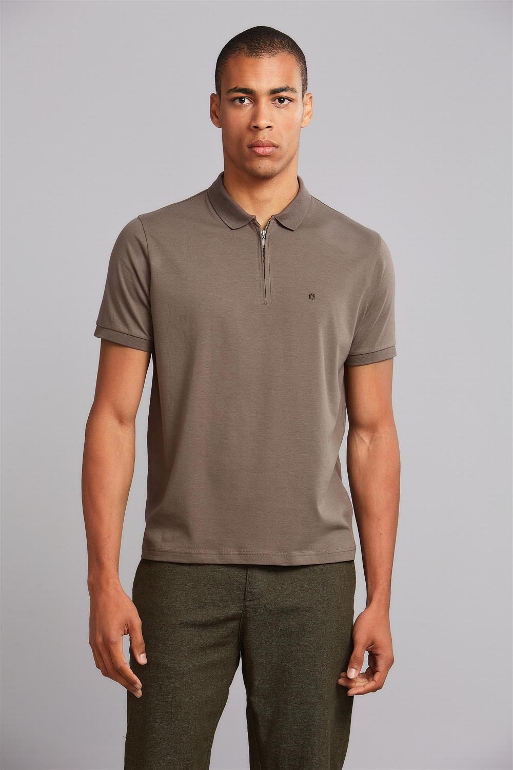 Polo Manga Curta com Zíper Comfort Básica - Marrom Telha