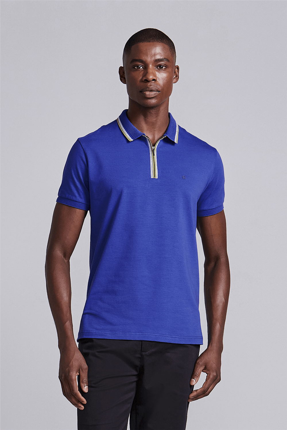 Camisa Polo com Zíper Malha Slim Fit - Azul Bic