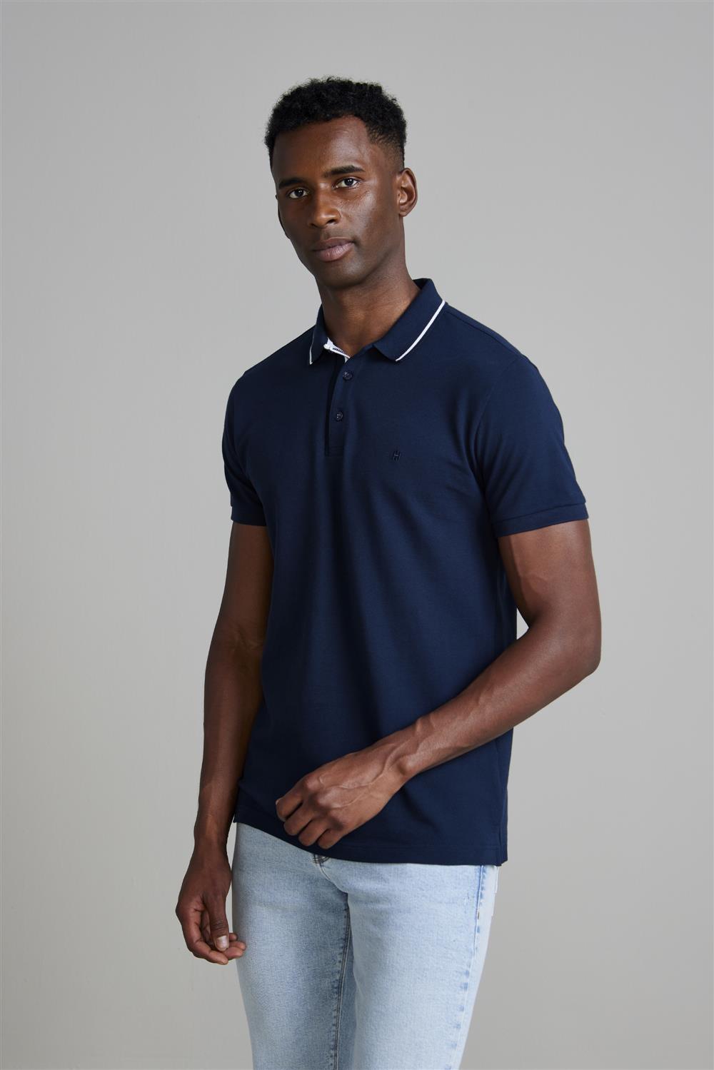 Camisa Polo Malha Slim Fit - Azul Marinho