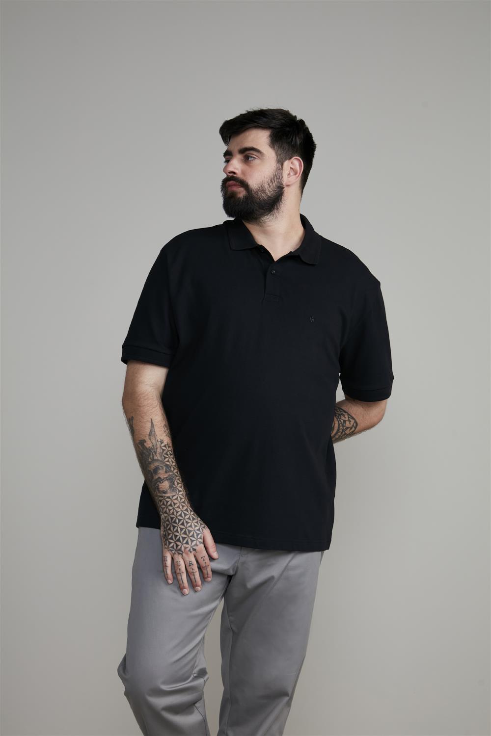 Polo Manga Curta Comfort Malha Básica - Preto