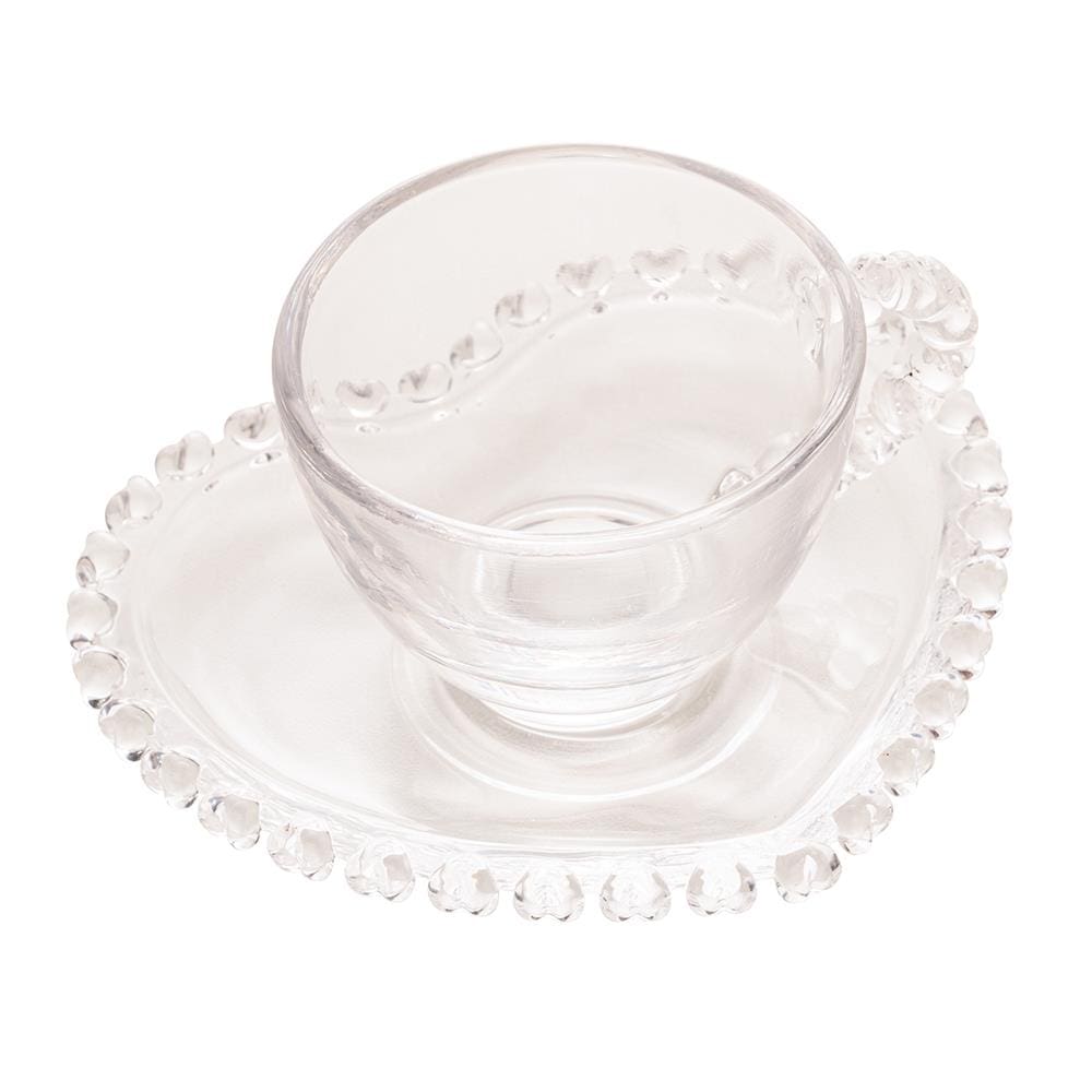 Xícara de Café com Pires Lyor Coração 80ml Cristal Design Romântico