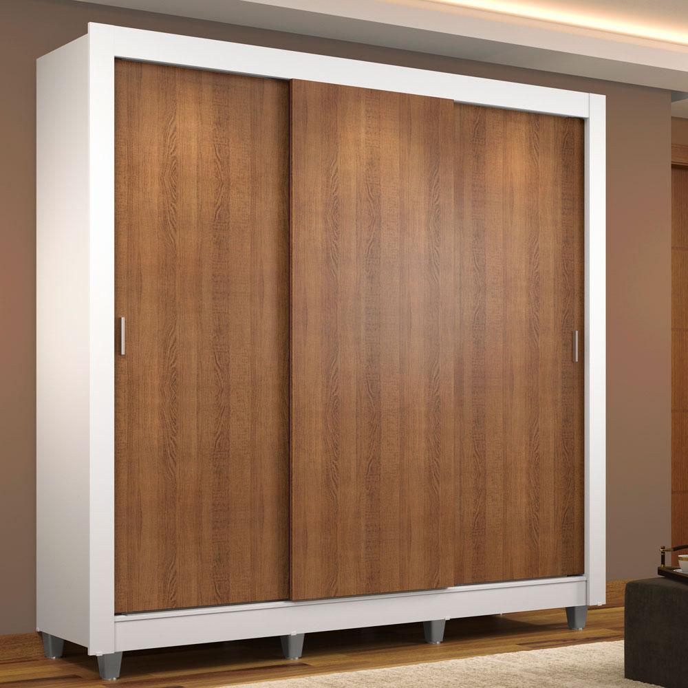 Guarda Roupa Casal Madesa Mônaco 3 Portas de Correr com Pés - Branco/Rustic