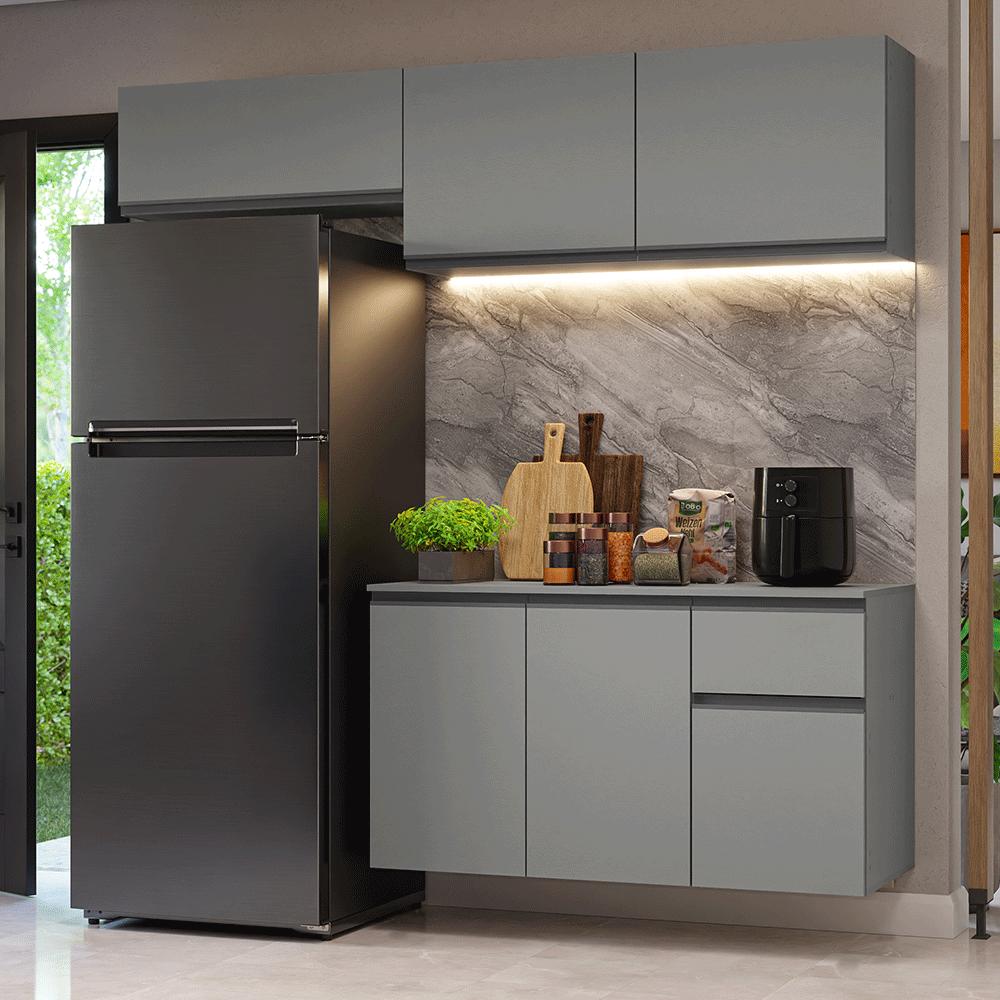 Armário de Cozinha Compacta Suspenso 200cm Cinza Nice Madesa 04