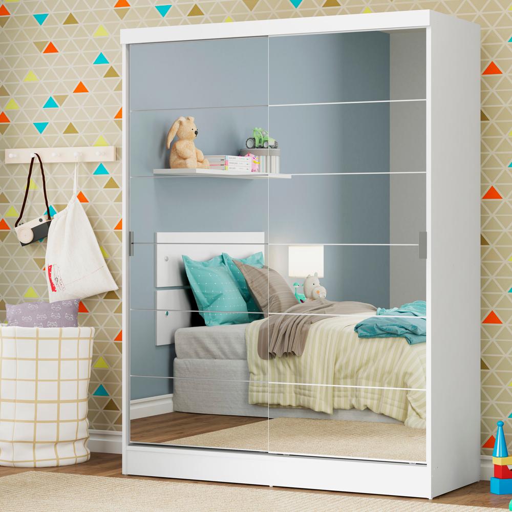 Guarda-Roupa Infantil Madesa Nick 2 Portas de Correr de Espelho - Branco