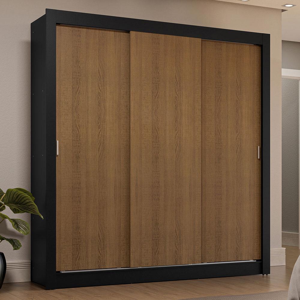 Guarda-Roupa Casal 3 Portas de Correr Preto/Rustic Sublime Plus Madesa