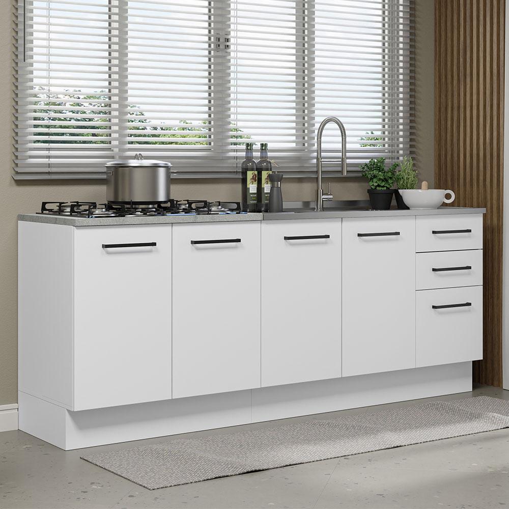Kit com 2 Balcões de Cozinha Madesa Agata 3 Gavetas 4 Portas (Sem Tampo e Pia) - Branco
