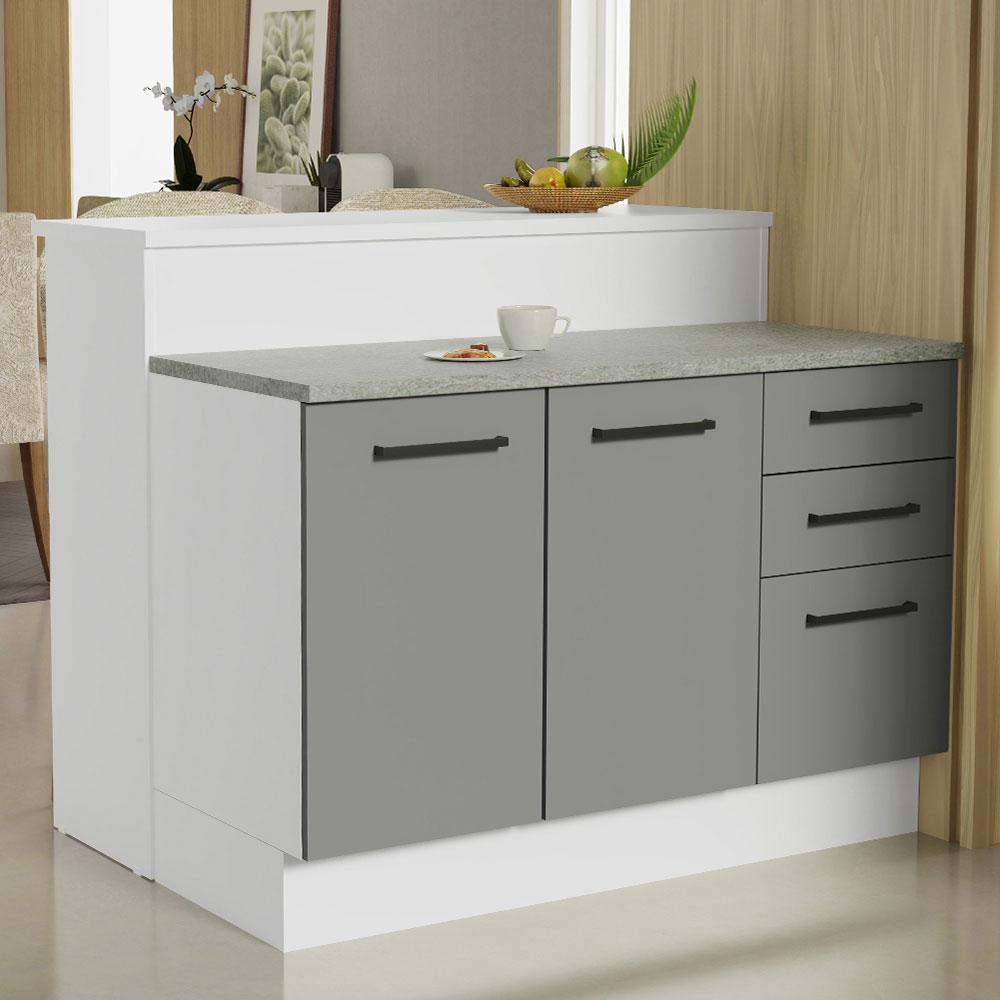 Ilha de Cozinha com Bancada e Balcão 120 cm Branco/Cinza Agata Madesa