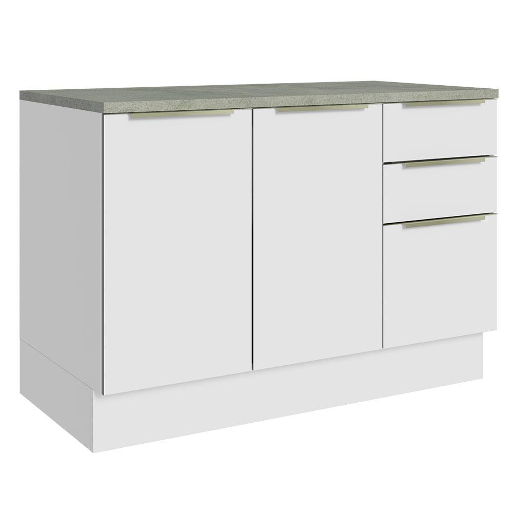 Balcão de Pia 120 cm 2 Portas 3 Gavetas Branco/Branco Veludo Lux Madesa
