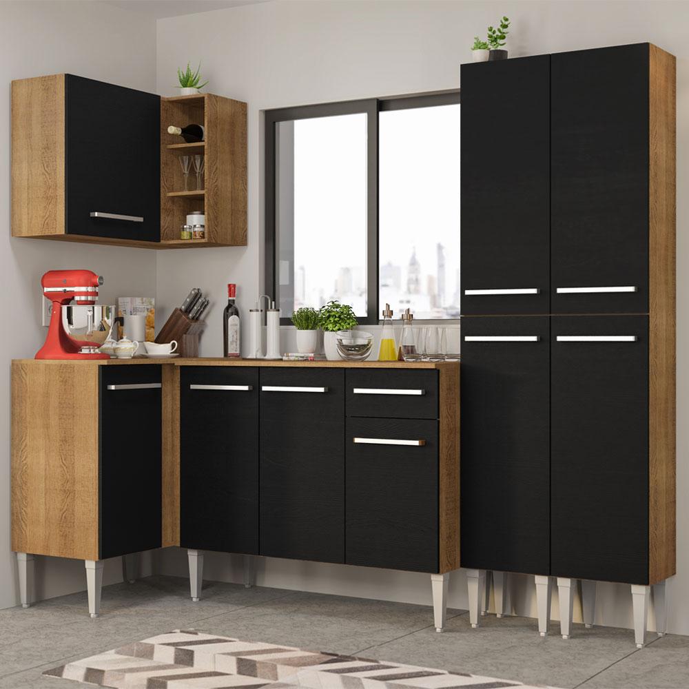 Armário de Cozinha Completa 250cm Preto Reims Madesa 09