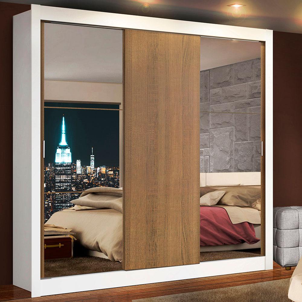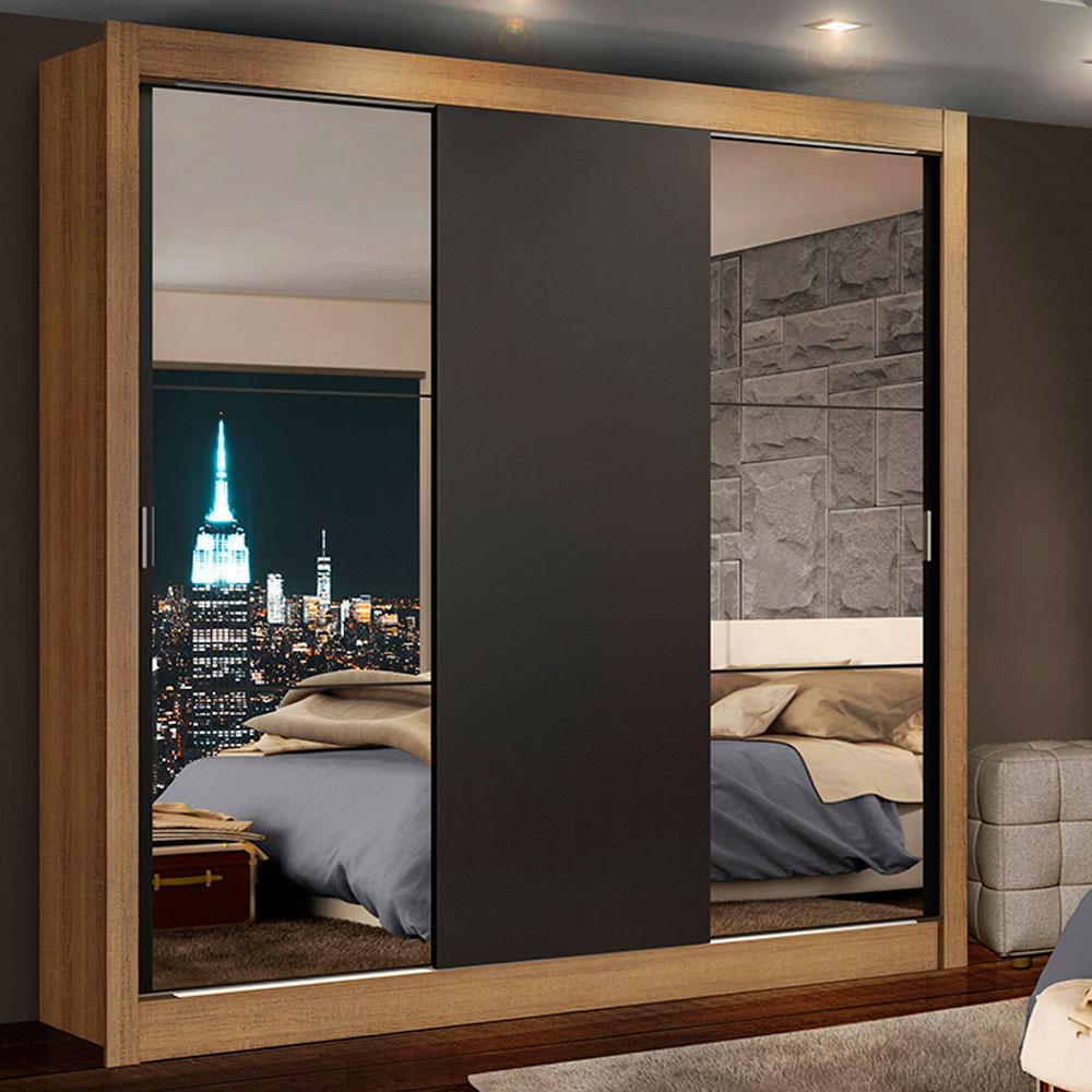 Guarda-Roupa Casal 3 Portas de Correr com Espelhos 2 Gavetas Preto Sublime Madesa