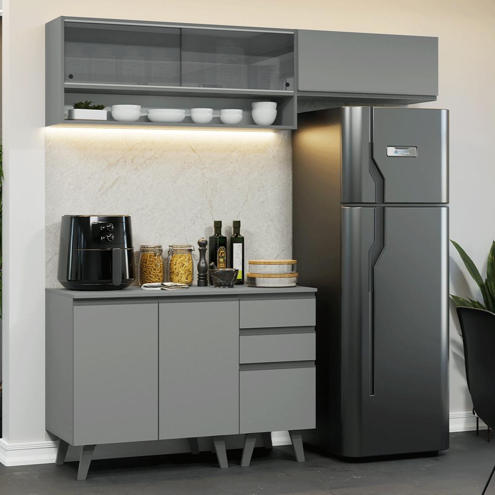 Armário de Cozinha Compacta 200cm Cinza Nice Madesa XA14