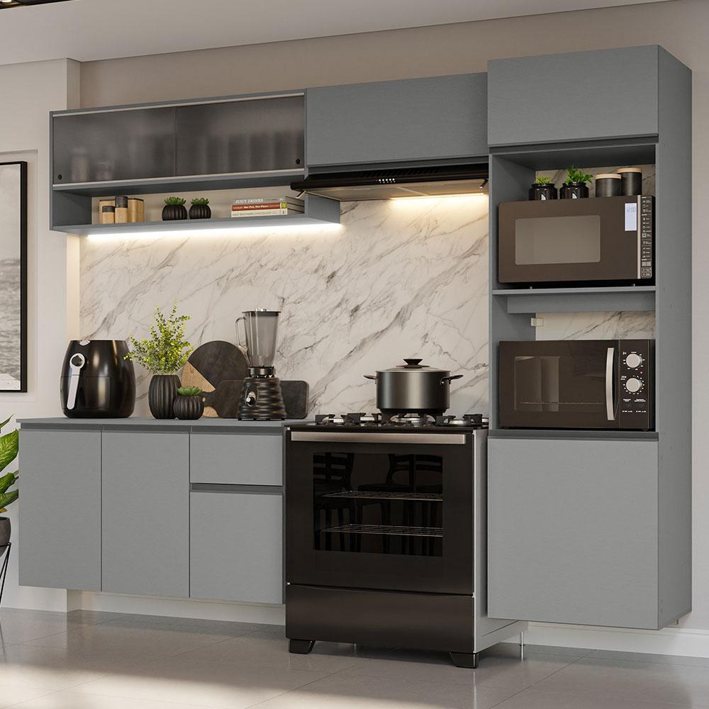 Armário de Cozinha Completa Suspenso 240cm Cinza Nice Madesa 04