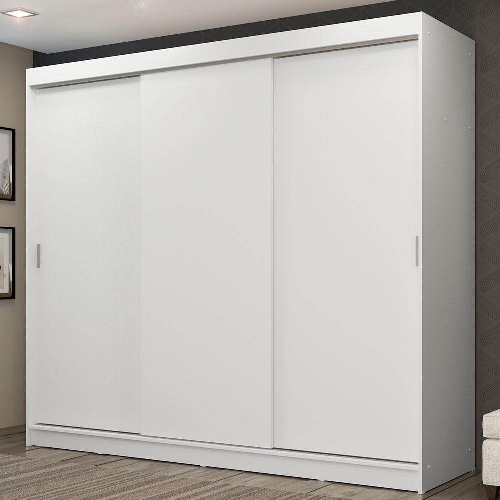 Guarda-Roupa Casal Madesa Napoli 3 Portas de Correr com Espelho - Branco