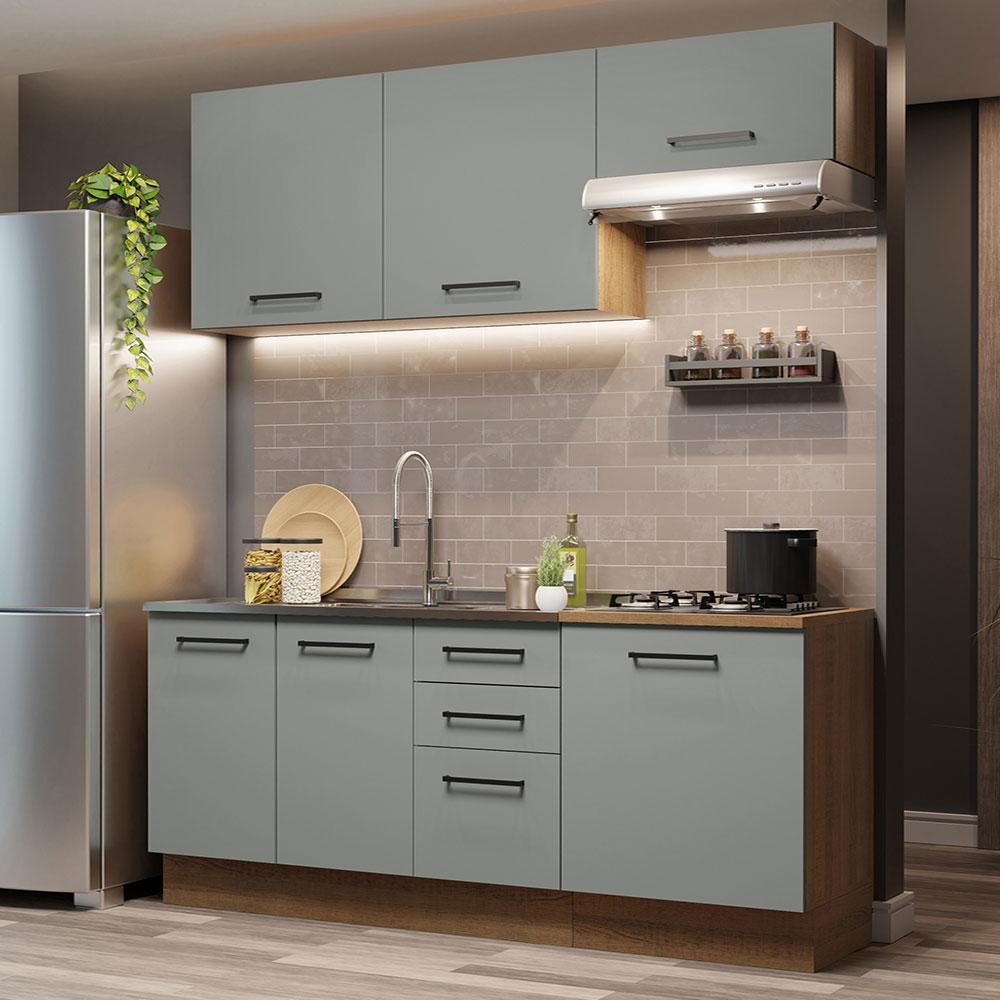 Cozinha Compacta Madesa Agata 180003 com Armário e Balcão (Sem Tampo e Pia) - Rustic/Cinza