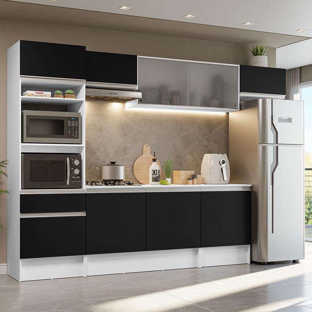 Cozinha Completa Madesa Topazio 300001 com Armário, Balcão e Tampo - Branco/Preto