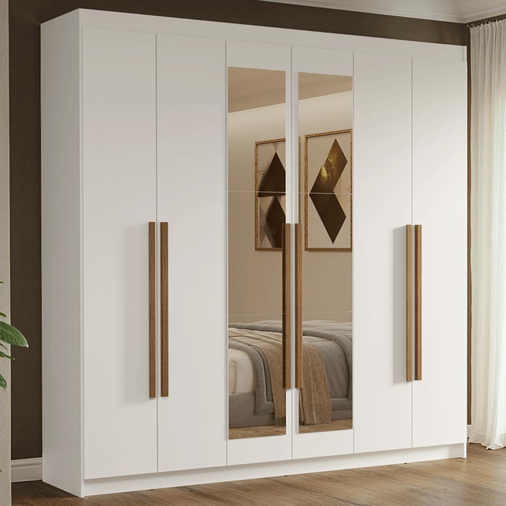 Guarda-Roupa Casal 6 Portas Batentes com Espelho Branco/Branco/Rustic Saturno Madesa